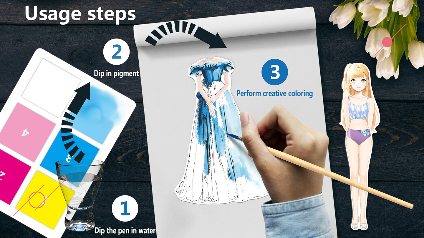 This STEAM painting game book combines fashion and creativity! Kids can use watercolor paints to design their own unique outfits. Afterward, they can use magnets to dress a cute doll, bringing their fashion dreams to life. Through design and dress-up play, children enhance their aesthetic skills, creativity, and imagination, building their own fashion world!