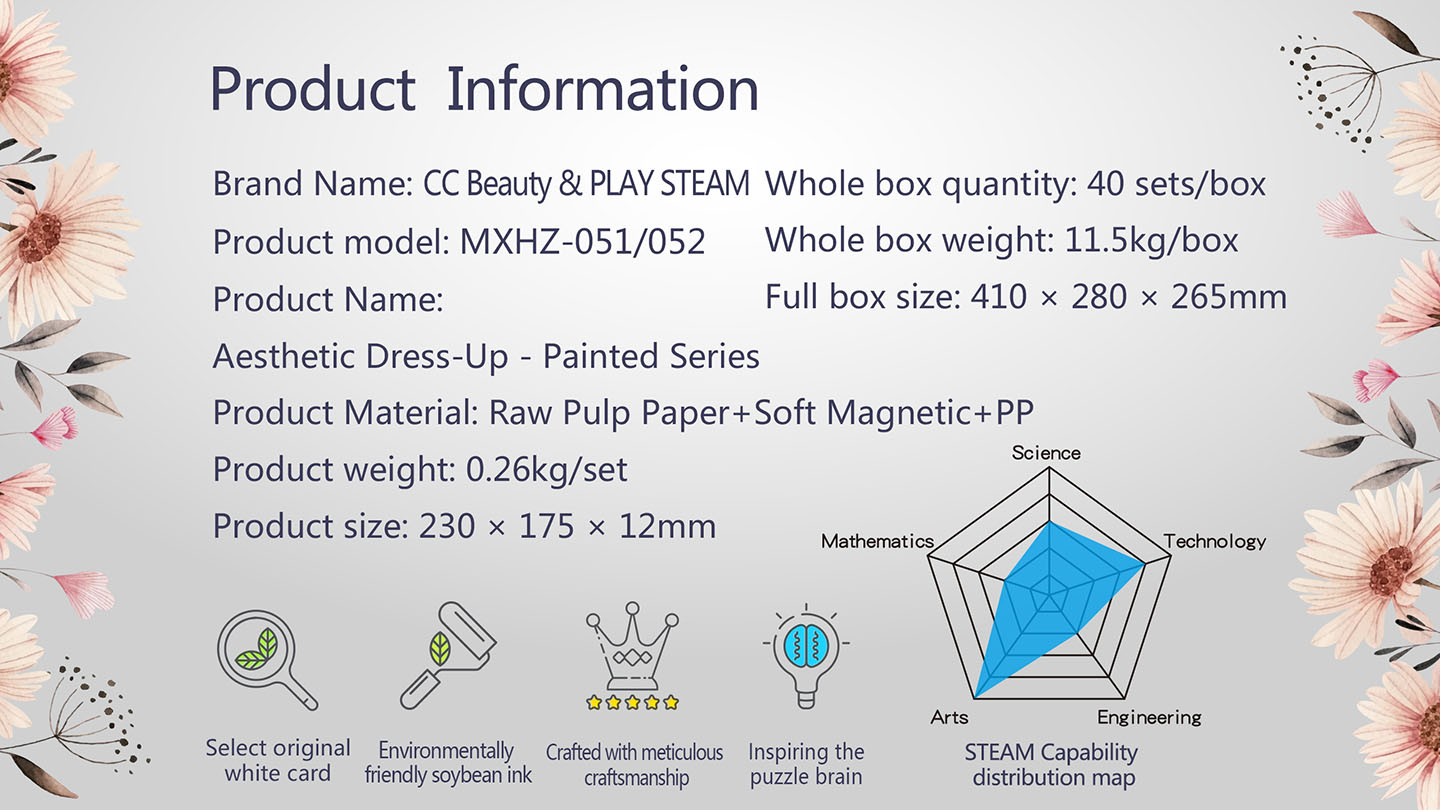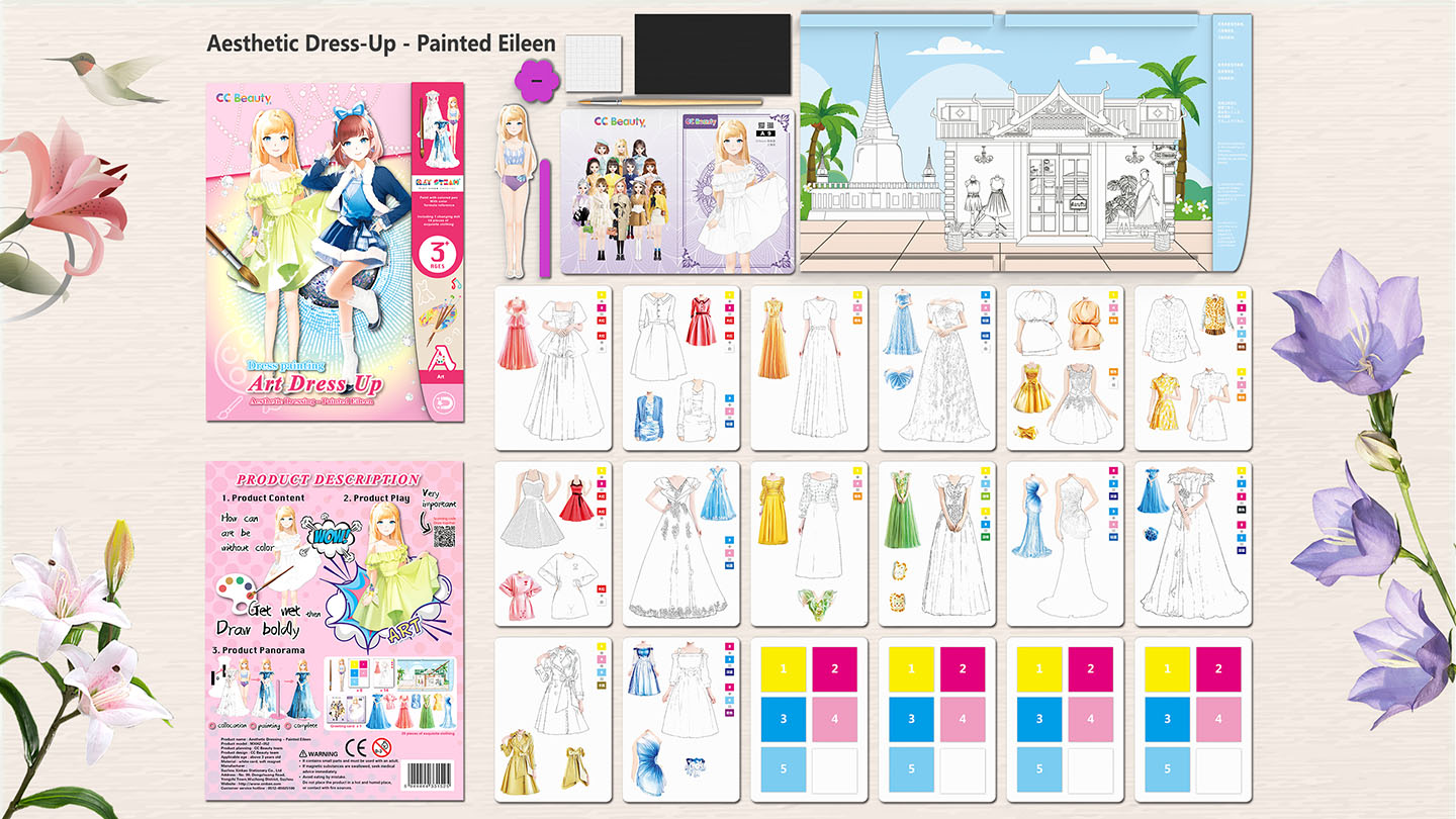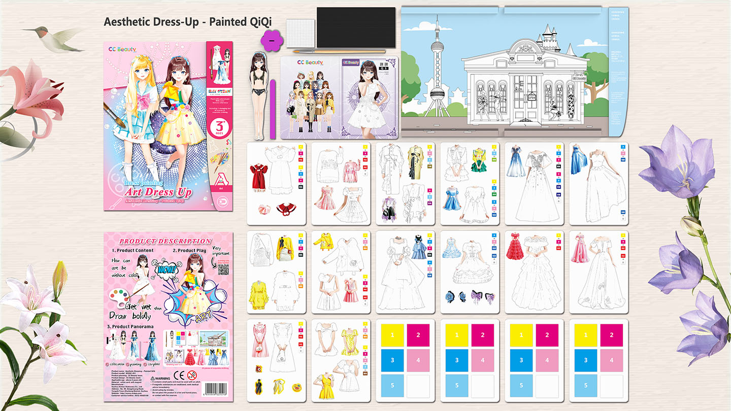 This STEAM painting game book combines fashion and creativity! Kids can use watercolor paints to design their own unique outfits. Afterward, they can use magnets to dress a cute doll, bringing their fashion dreams to life. Through design and dress-up play, children enhance their aesthetic skills, creativity, and imagination, building their own fashion world!